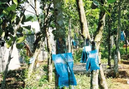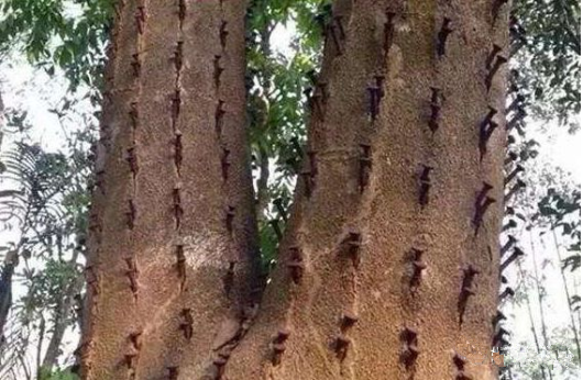 用插鐵枝法也能夠促進沉香樹快速結(jié)香,這也是一種常用的人工造香方法。插鐵枝的造香方法是在距離地面約1米左右的沉香樹干上插上鐵枝,按照沉香樹干大小每排可以插3-5條鐵枝。